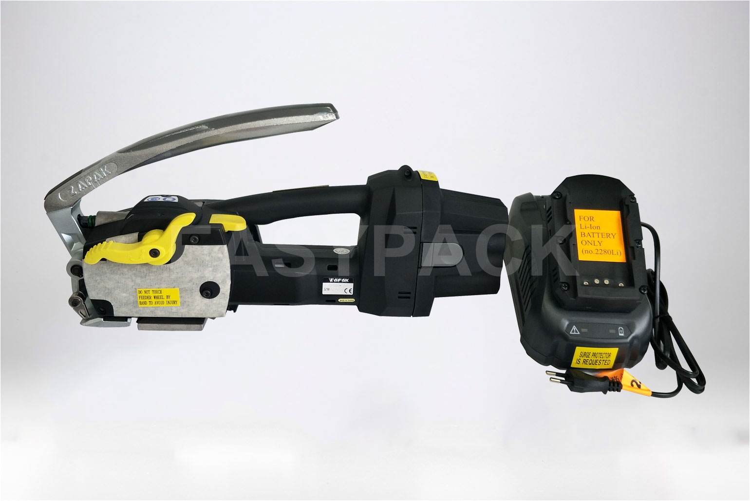 ◆ 較強(qiáng)的拉力2200N,能有效拉伸塑鋼帶并束緊被包裝物。
